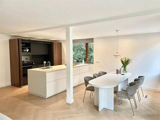 Voor een van onze tevreden klanten uit Aerdenhout hebben wij de keuken met woonkamer compleet gerenoveerd. Het oude is eigenlijk niet meer te herkennen na de renovatie. Naast het plaatsen van de nieuwe keuken zijn alle vloeren en wanden compleet gerenoveerd.